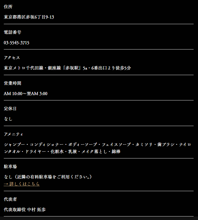 中村拓歩氏は赤坂にある「SAUNATIGER」の代表取締役として記載されている人物です。しかしその素性や顔写真などは不明です。