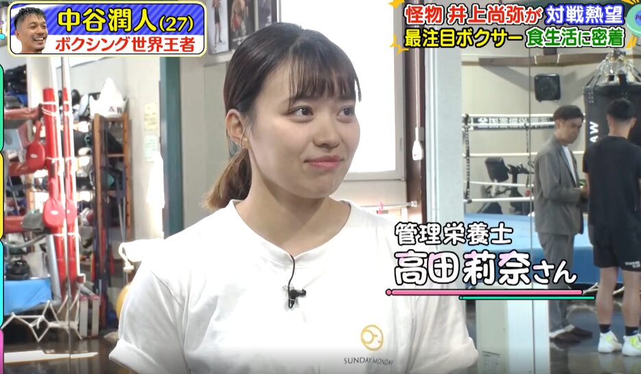 管理栄養士の高田莉奈さんは、2025年の4月に行われたアメリカ合宿から、中谷潤人選手の食事面をサポートするようになりました。