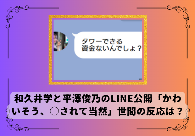 以上、「和久井学と平澤俊乃のLINE公開。「かわいそう」「◯されて当然」世間の反応は?」の記事のまとめでした。