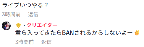 こちらの投稿はコメント欄も解禁されており、ユーザーに返答する様子も見られています。ライブ配信のリクエストもされていますが、「BANされるからしない」と返答しています。