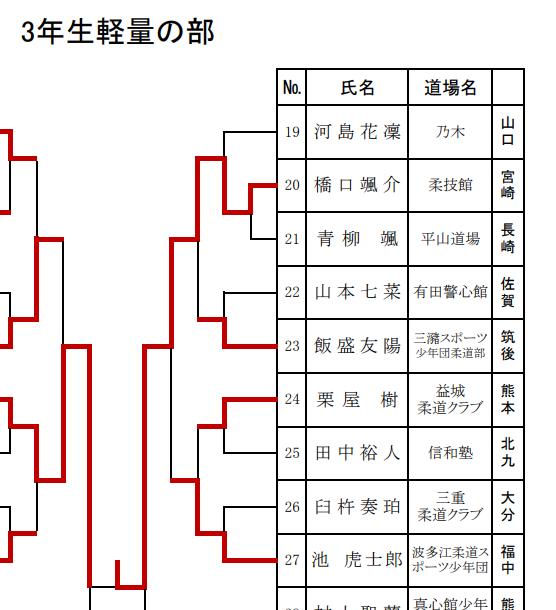 2019年九州少年柔道大会の個人戦では、小学校3年生の軽量の部で一回戦を突破しています。