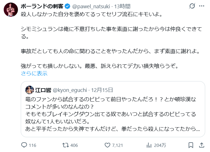 — やるべしたら竜 (@ryu_sato8814) December 15, 2025