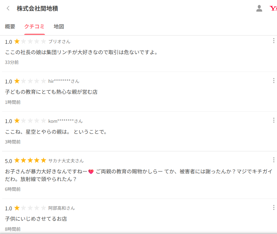 ただヤフーマップのクチコミ欄は炎上しており、これは娘と見られる渡部星空さんのいじめ動画が拡散された事によるものだと思われます。