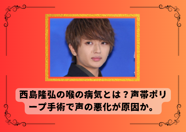 この記事では西島隆弘さんの喉の病気である「声帯ポリープ」について見ていきたいと思います。