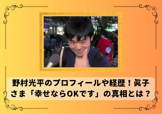 昔からXをやっている人なら、1度はこのワードを聞いたことがあるんじゃないでしょうか。街頭インタビューで眞子さまの結婚報道に対してそのコメントをしたのが当時青山学院大学の学生だった「野村光平さん」です。