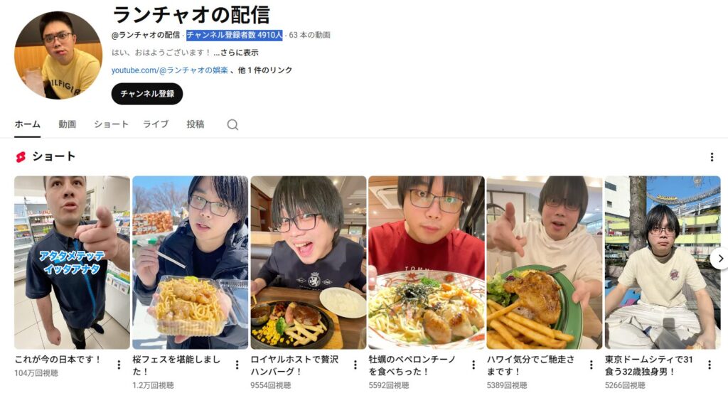 - YouTubeチャンネル登録者数は4910人という情報