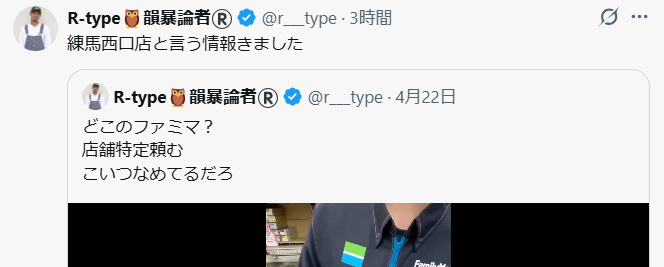 - 動画に映ったのはファミマ店員とみられる男性