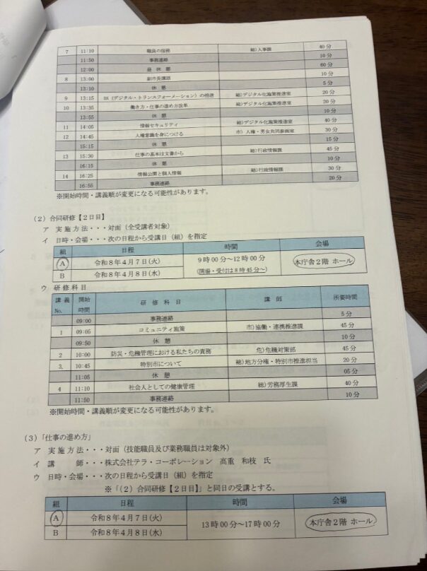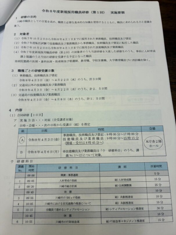 - 川崎市の新規採用職員が、LINEオープンチャット「川崎市役所 自治体研究&面接対策」に研修資料の写真を投稿
