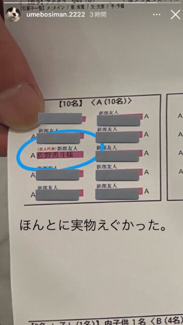 - 佐野勇斗が参列した結婚式の席次表がSNSに投稿され炎上